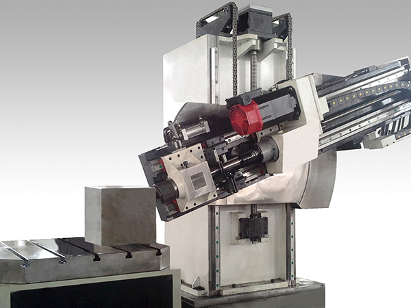 主轴 (A轴)向上15/20度,向下25/30度高精度旋转。实现复合角度加工。 主轴具有强力铣削功能。 可配喷吸钻,实现高效率、高精度、高光洁度的大孔加工。产品参数
